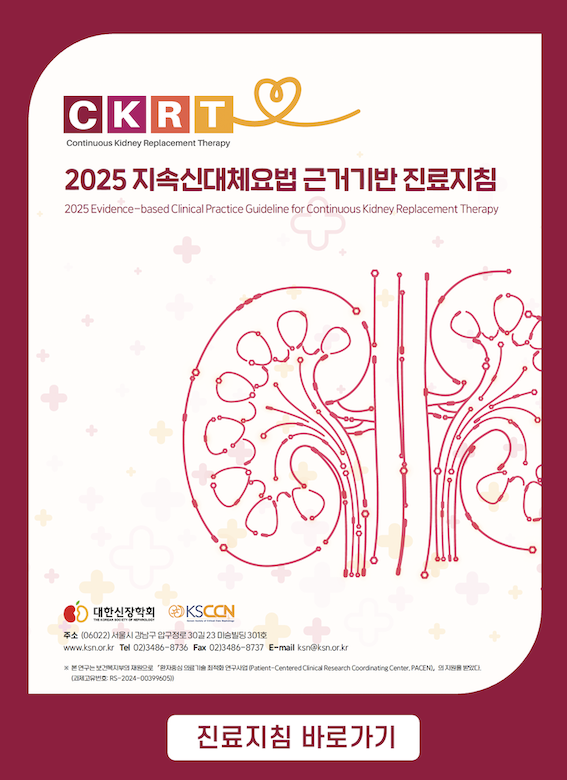- · CKRT 지속신대체요법 진료지침, 교육자료, 교육영상 2026-01-24